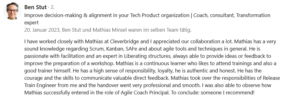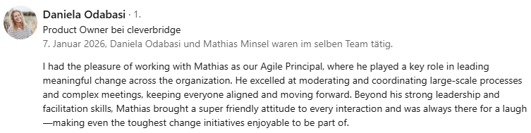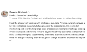 - Change Fatigue im Team: Mitarbeiter, die bei der Einführung neuer Frameworks (SAFe, Scrum, Nexus) blockieren oder innerlich kündigen.